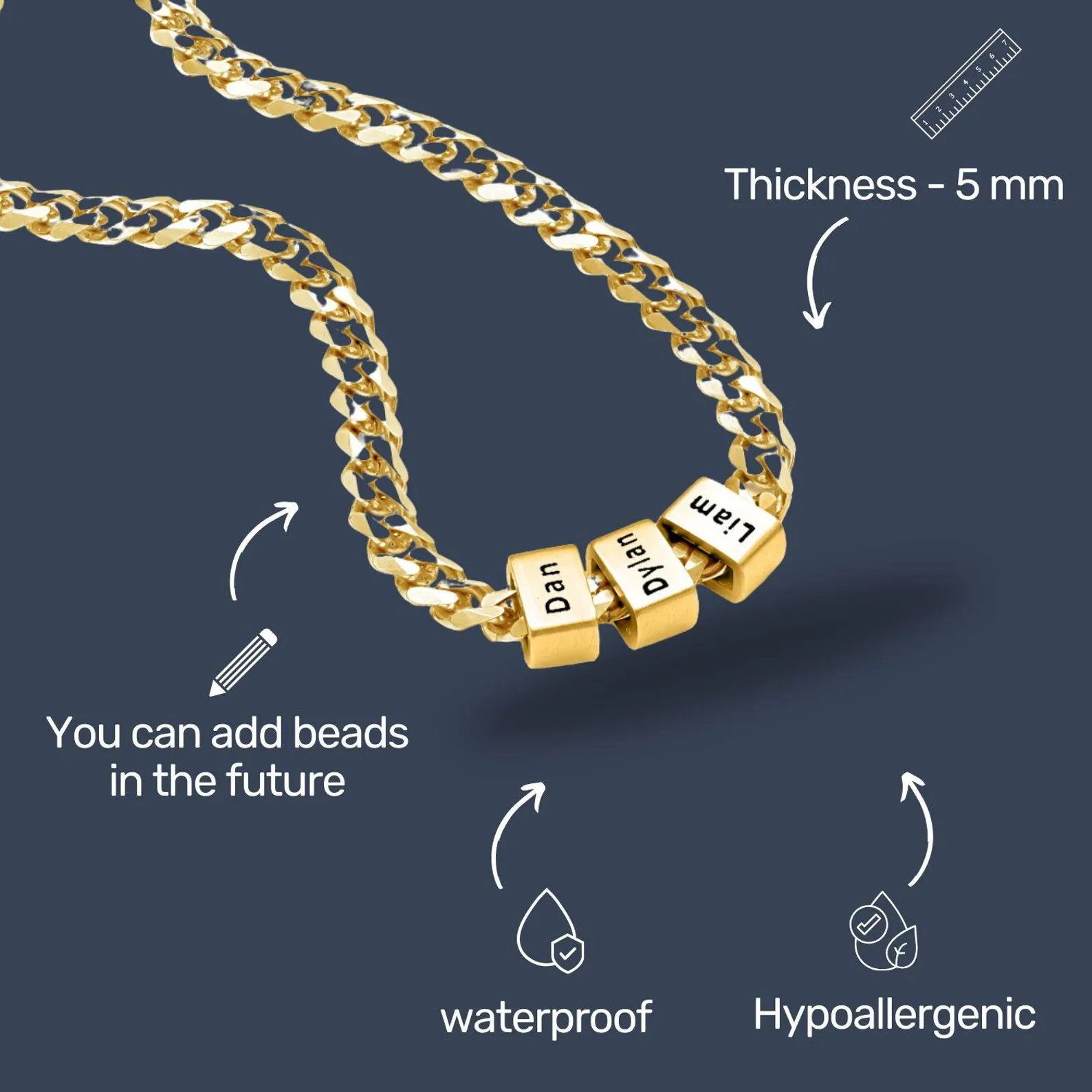 Whether you're celebrating a special occasion, honoring family, or simply want to carry the names of those closest to your heart, this necklace combines elegance and sentiment in one beautiful piece. The durable, high-quality craftsmanship ensures that this necklace will be a cherished keepsake for years to come. Ideal gift for him, it's perfect for birthdays, anniversaries, or just because.